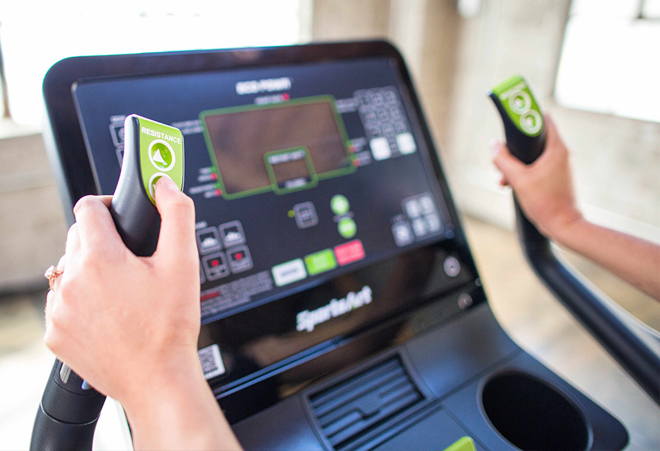SportsArt 最新的一项环保创举,即是革命性的 ECO-POWR™ 產品線。ECO-POWR™ 是一系列有氧健身產品,其內建換流器,可利用運動時產生的電量,將其轉換為交流電源,再將該電源作為可利用的能源重新供應給機器使用。健身房擁有者若選擇將有氧訓練器材更換為 ECO-POWR™ 系列,便能減少他們 設施的碳足跡,抵消電費,帶來更多好處。
