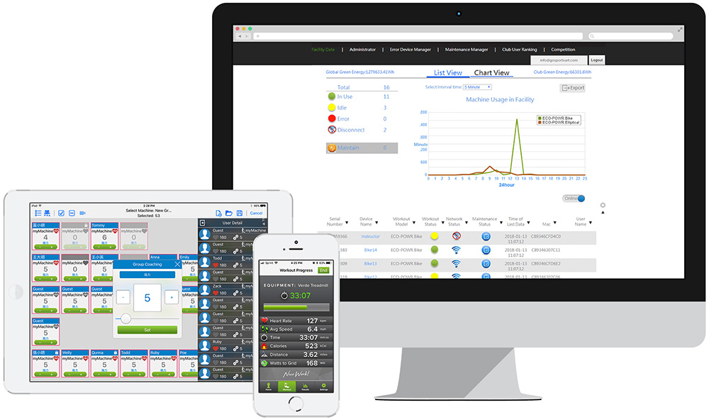 动感单车教练可以透过COACH APP功能与学员使用的G510动感单车联机,有效提升学员表现与发电量